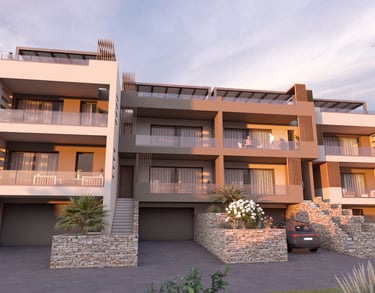 Elegant 2 bedroom apartments, amazing sea views,parking, exclusive use of terace with jacuzzis, pergolas, sunbeds and grate outdoor living